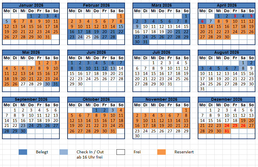 Availability calendar / Belegungsplan